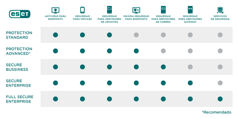 Brinda la posibilidad de combinar la protección para sus equipos, smartphones, tabletas y servidores.